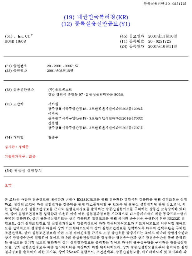 특허 | (대한민국) 광통신 실험장치 페이지 정보 작성자 관리자 작성일11-08-05 21:14 조회19,010회 댓글0건 관련링크 이전글 다음글 목록 본문 (대한민국) 광통신 실험장치 댓글목록 등록된 댓글이 없습니다. 이전글 다음글 목록