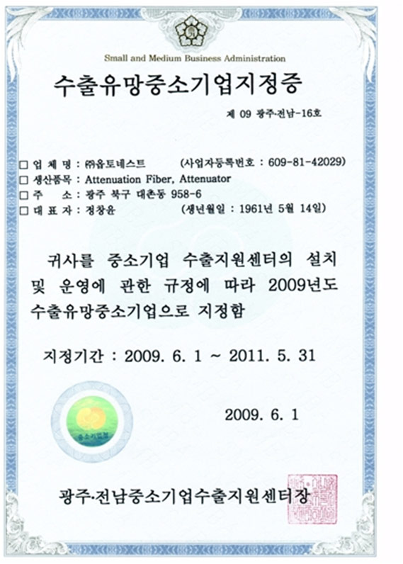 인증 | 수출 유망 중소기업 지정증 페이지 정보 작성자 관리자 작성일10-10-15 09:16 조회21,153회 댓글0건 관련링크 이전글 다음글 목록 본문 수출 유망 중소기업 지정증 댓글목록 등록된 댓글이 없습니다. 이전글 다음글 목록