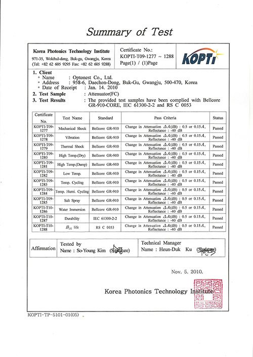 인증 | GR 910 test (광감쇠기)